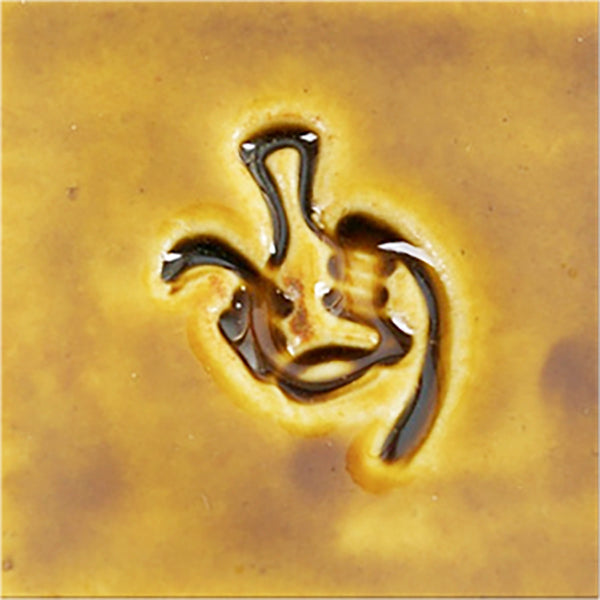 Amber is a semi-transparent, glossy golden glaze. On porcelain it will be a light golden color, on white clay it will be slightly darker and on red clay it will be a dark gold color.