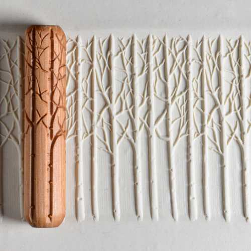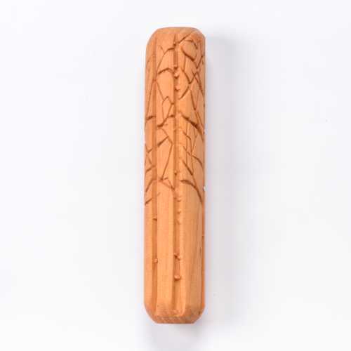 This Hand Roller is 12 cm (4.75 inches) long and 2.5 cm (1.0 inch) in diameter.  You simply roll them with your hand across the clay or up the wall of a pot to create a beautiful pattern in the clay.