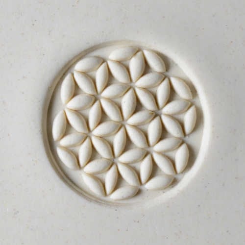 This stamp is 4 cm (1.5 inches) in diameter. It can be used to create beautiful patterns on any soft medium, including natural clays, porcelain, polymer clays, cookie dough and fondant.