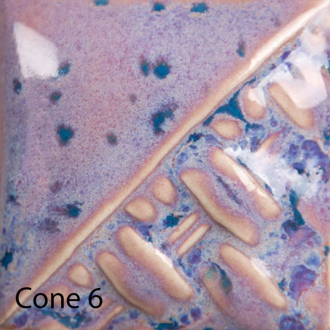 TIP: Purple Aster uses SW165 Lavender Mist as the base glaze. This glaze stable at 3 coats, even with heavy application. Crystals can create movement. Avoid having a heavy concentration of crystals near the bottom of your piece. Can be used in oxidation or reduction firings. Results may vary. The choice of clay body, thickness of application, firing process, and temperature will greatly affect the fired results. Always test your application on your clay body in your kiln environment.