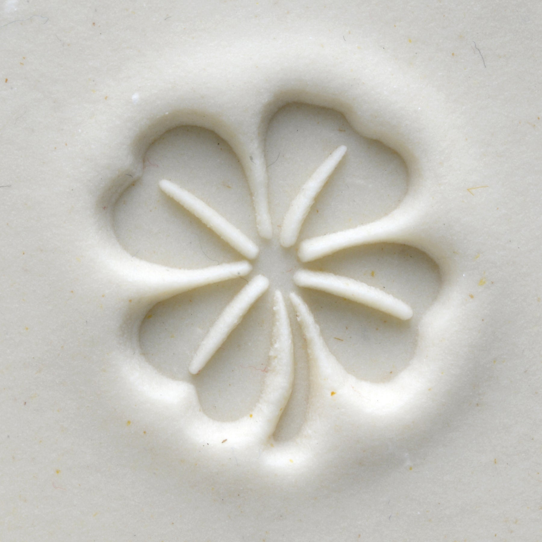 This stamp is 2.5 cm (1 inch) in diameter. It can be used to create beautiful patterns on any soft medium, including natural clays, porcelain, polymer clays, and even cookie dough.