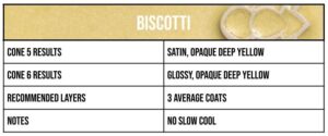 Biscotti is a gloss glaze that provides the ideal beige tint to surfaces with a hint of light bronze variations throughout. A standard application of Biscotti will provide a welcome accent to any piece.