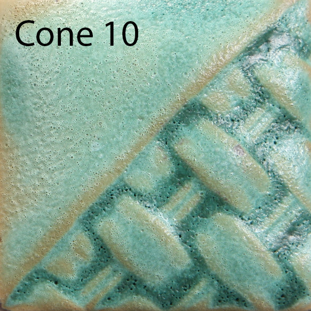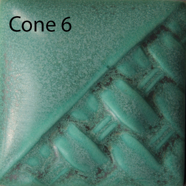 Cone 6: Satin Patina is a rich tonal matte green patina glaze. The variation of the glaze is dependent on application. The thicker the application the more opaque and homogenous the color will be, and thinner application will allow more of the clay body to show through the glaze.