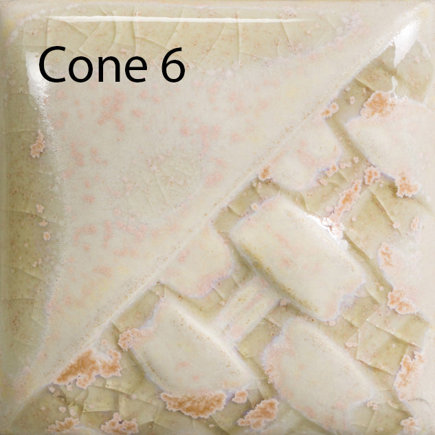 Cone 6: Himalayan Salt is a soft matte glaze with light pink and burnt orange mottling that will pool a glossy clear.