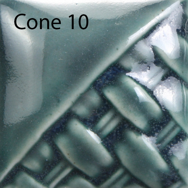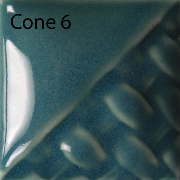 Cone 6: Peacock provides a translucent, teal gloss color. You will produce beautiful color variations with Peacock without the glaze running off your ware during firing. Designed to provide a hint of color with one coat, deeper color with two to three coats – but remaining translucent.