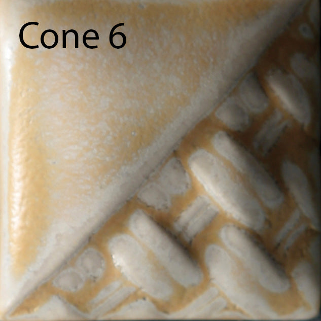 Cone 6: Macadamia is a creamy vanilla matte glaze that adds accents of gold. We recommend firing our matte glazes to cone 6 to produce a satin matte finish.