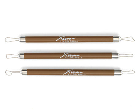 This set of three double wire end tools is perfect for fine modeling, incised design and sgraffito work. Each tool is made of fine stainless wire for precision cutting, cleaning and sharp modeling of edges with confidence.