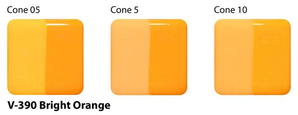 Bright Orange is a tangerine color that is neon at cone 05/06, darkens slightly at cone 5/6 and becomes a deep pumpkin at cone 10. A clear glaze accentuates the color nicely at any temperature.