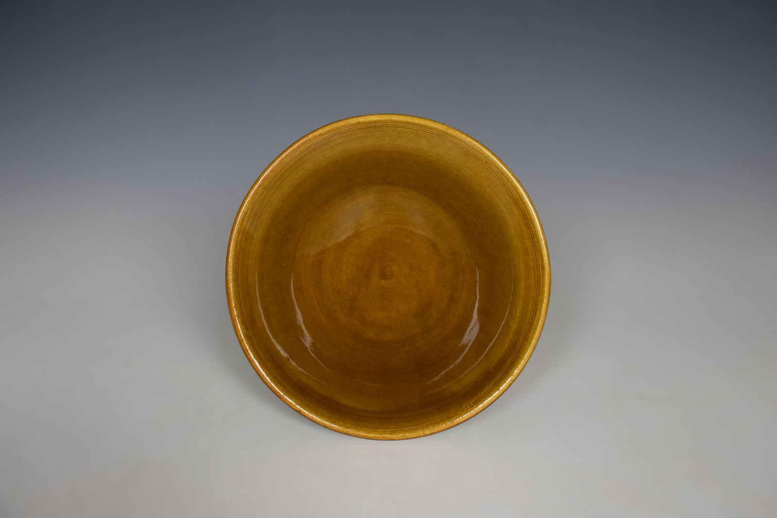 Amber is a semi-transparent, glossy golden glaze. On porcelain it will be a light golden color, on white clay it will be slightly darker and on red clay it will be a dark gold color.