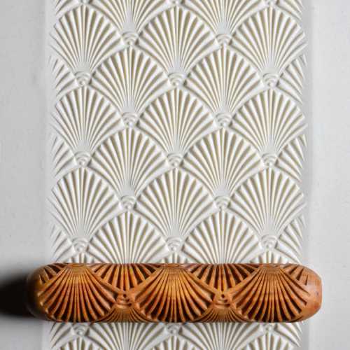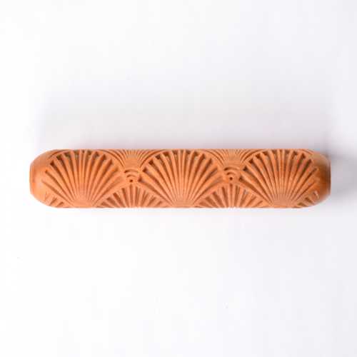 This Hand Roller is 12 cm (4.75 inches) long and 2.5 cm (1.0 inch) in diameter. You simply roll them with your hand across the clay or up the wall of a pot to create a beautiful pattern in the clay.