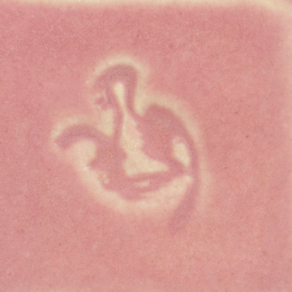 Berry Blush is a translucent, glossy, berry pink that breaks over texture and maintains its color on darker clay bodies.  This glaze will blush a darker shade of pink if placed next to a piece that fumes during the firing.