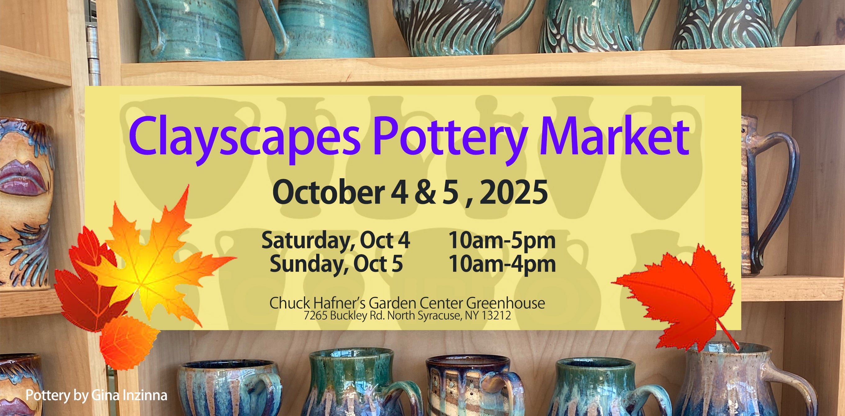 Get your holiday shopping started at the 8th Annual Clayscapes Pottery Market. This year's Pottery Market will be back in the greenhouse at Chuck Hafner's Garden Center with 40+ participating potters and artists using clay as a medium.
