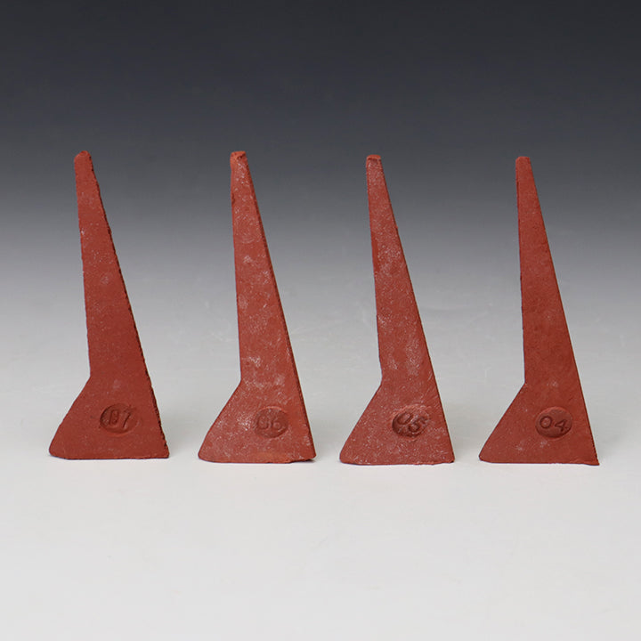 These cone packs have 8 Self Supporting Cones in them, no need for cone holders or little balls of clay. Each cone has the number stamped on its base. Place your cones so they will not touch anything as they bend. Your target cone (the temperature you want to reach) should be bent 90 degrees after firing. If your cone falls shy or exceeds 90 degrees, please contact us and we will help you figure out why.