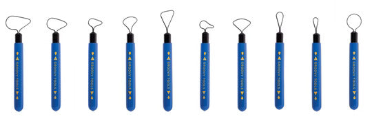 The premium quality trim tools in the Groovy 300 SERIES feature a MEDIUM GAUGE true tool steel loop that is hardened & tempered to create a super steel blade. The loop is ¼” wide, and sharp on both edges. Acetate handles have closed cell foam grips for added comfort. The overall length of each tool is approximately 6-1/2”. The tools can be re-sharpened for extra long life.