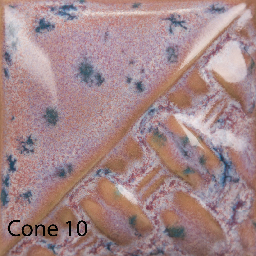 TIP: Purple Aster uses SW165 Lavender Mist as the base glaze. This glaze stable at 3 coats, even with heavy application. Crystals can create movement. Avoid having a heavy concentration of crystals near the bottom of your piece. Can be used in oxidation or reduction firings. Results may vary. The choice of clay body, thickness of application, firing process, and temperature will greatly affect the fired results. Always test your application on your clay body in your kiln environment.