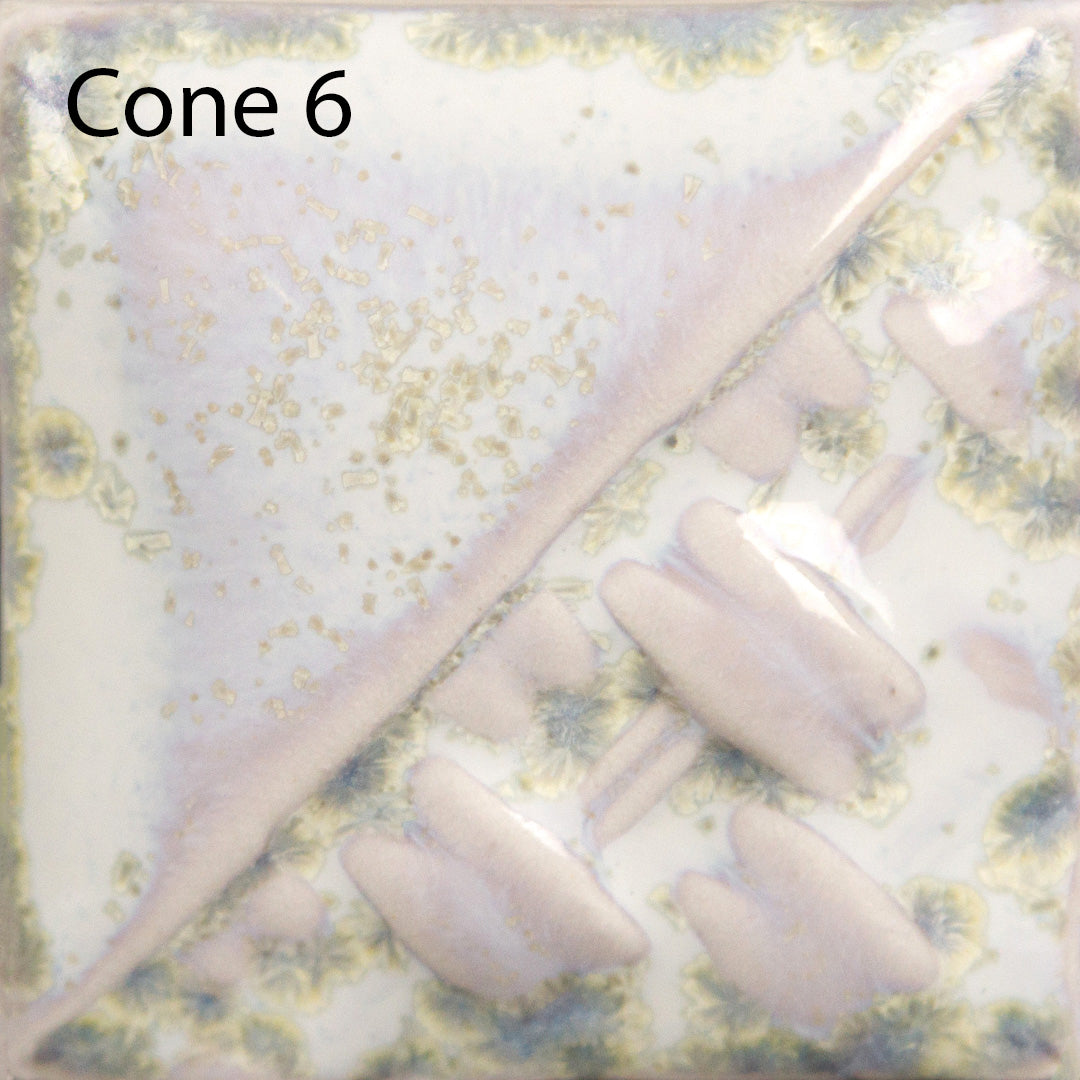 TIP: This glaze is stable at 3 coats. Additional coats or increased application thickness may result in movement. We recommend firing our micro glazes to cone 6 oxidation to reach crystalline development. Micro-Pearl achieves a stable, semi-opaque, frosted white result with a pearlescent satin finish when fired to cone 5. Can be used in oxidation or reduction firings. Results may vary. The choice of clay body, thickness of application, firing process, and temperature will greatly affect the fired results. Always test your application on your clay body in your kiln environment.