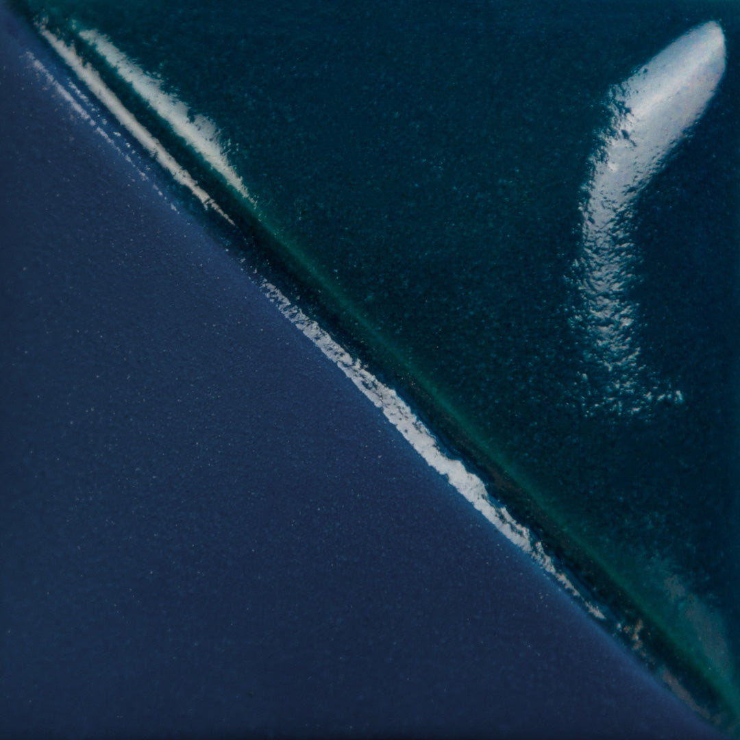 Cone 06 oxidation (first image): Aquamarine will fire matte without addition of a clear glaze. To intensify color or for use on dinnerware, apply clear or matte clear glaze.