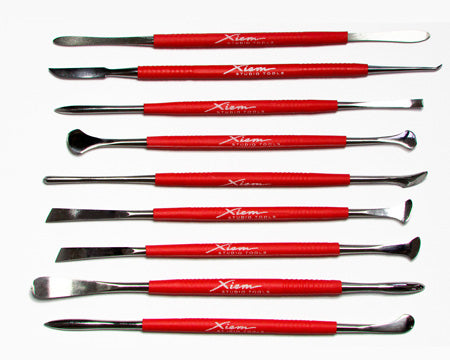 All the right tools for your modeling and carving needs. Each tool is made from solid, high-grade stainless steel and handcrafted in a variety of essential shapes and contours for intricate modeling, carving, shaping and clay removal. The bright red rubber ensures a secure grip and makes them fun to use and easy to find. These tools are made to last a lifetime and can be sharpened.