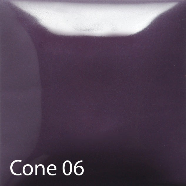Cone 06: Purple-Licious is a heavily pigmented, viscous Stroke & Coat® glaze that can be used for brush strokes or opaque coverage. One coat will create a translucent finish with subsequent coats adding opacity. We suggest two to three coats for full opacity and all over coverage. Will fire to a gloss finish without clear glaze.