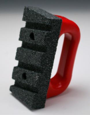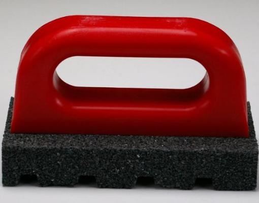 A rubbing brick made from silicon carbide to clean glaze and kiln wash from kiln shelves.
