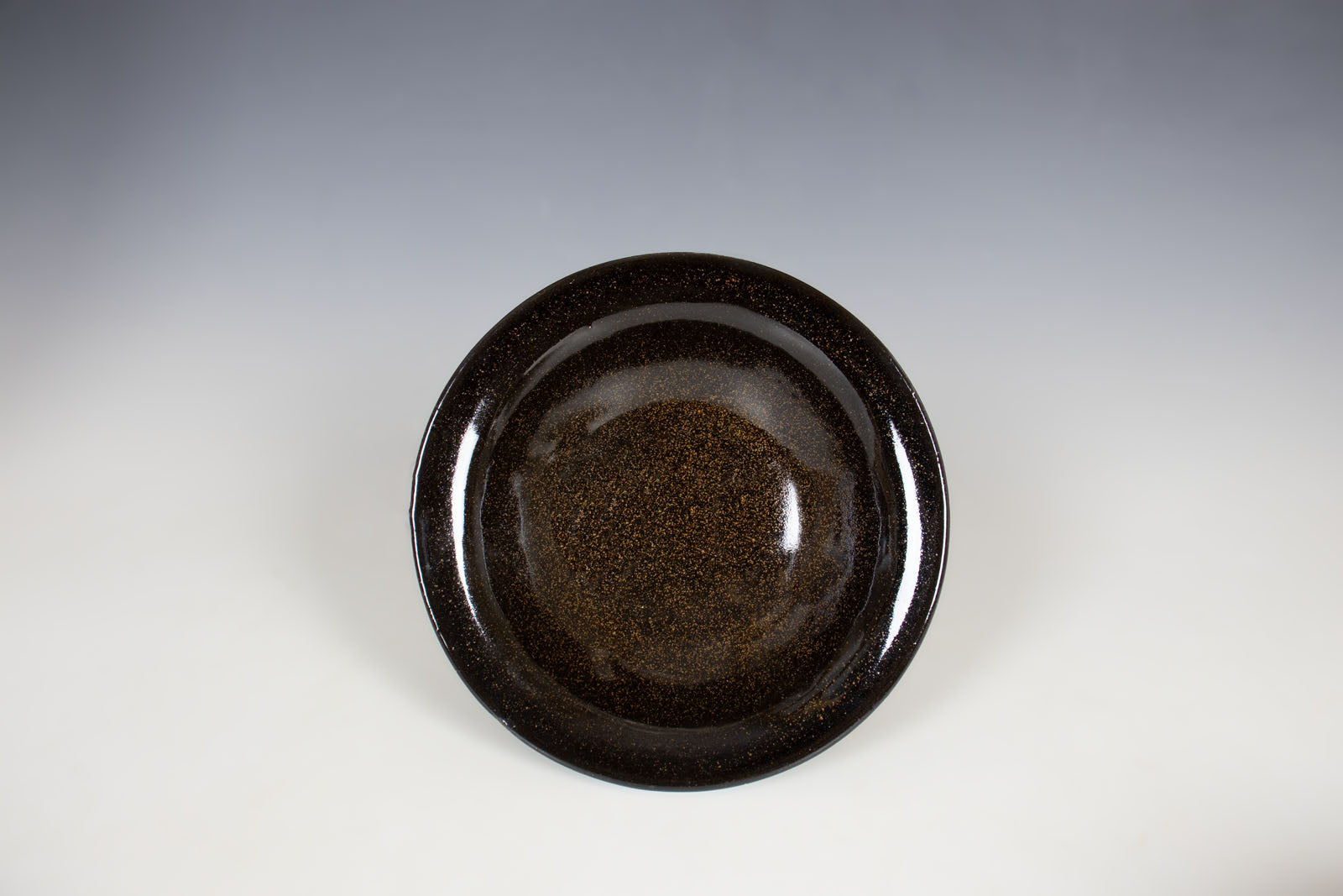 Starry Night is an opaque, glossy, temmoku, dark brown glaze that develops tea dust in shades of gold to light yellow.