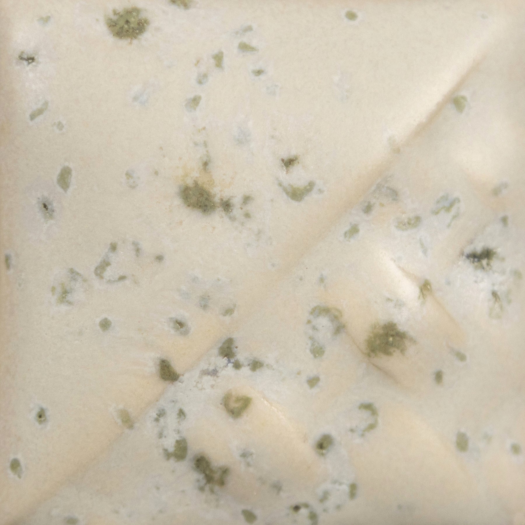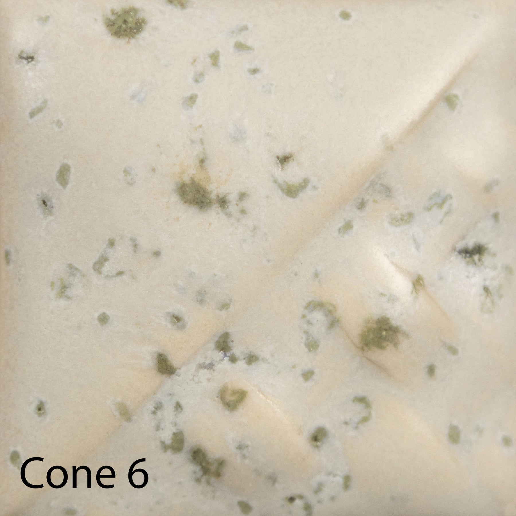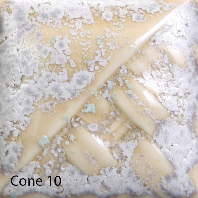 Cone 6: Sea Salt is a white matte glaze that contains a sandy-brown crystal. As the crystal melts, brownish-tan small blooms appear in the glaze, producing a foamy, textured fired finish.