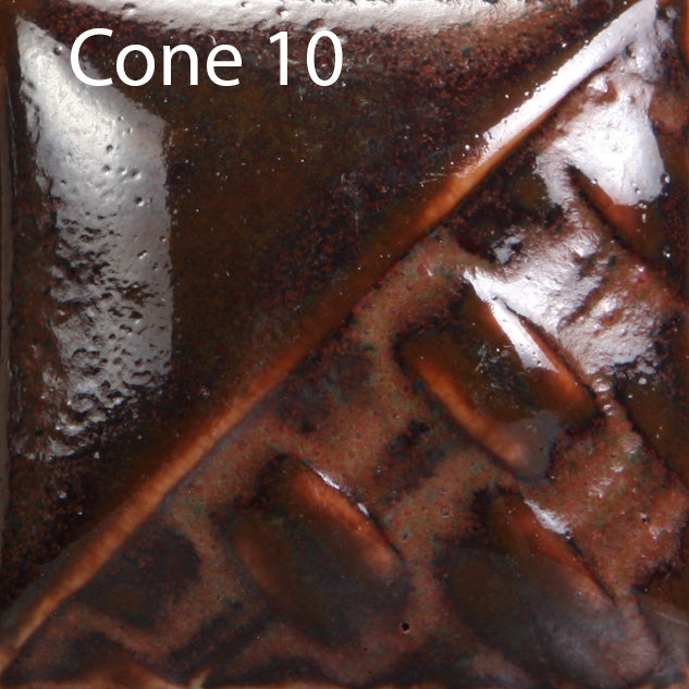 Cone 6: Speckled Plum produces a reddish brown gloss finish (one to two light coats) and evolves to deliver floating maroon-mauve tones with heavier applications (three to four coats). Heavier applications may also yield bands of reddish-mauve specks when used with certain clay bodies. While you’ll enjoy how Speckled Plum moves, the glaze will not run off your ware during a cone 6 oxidation firing.