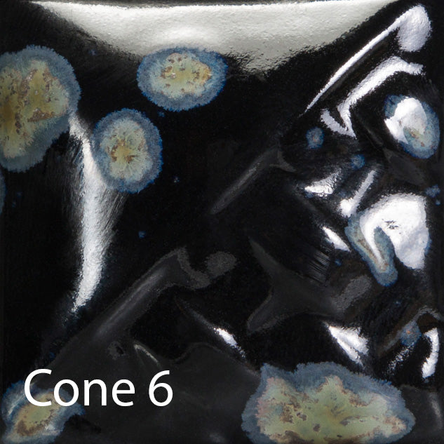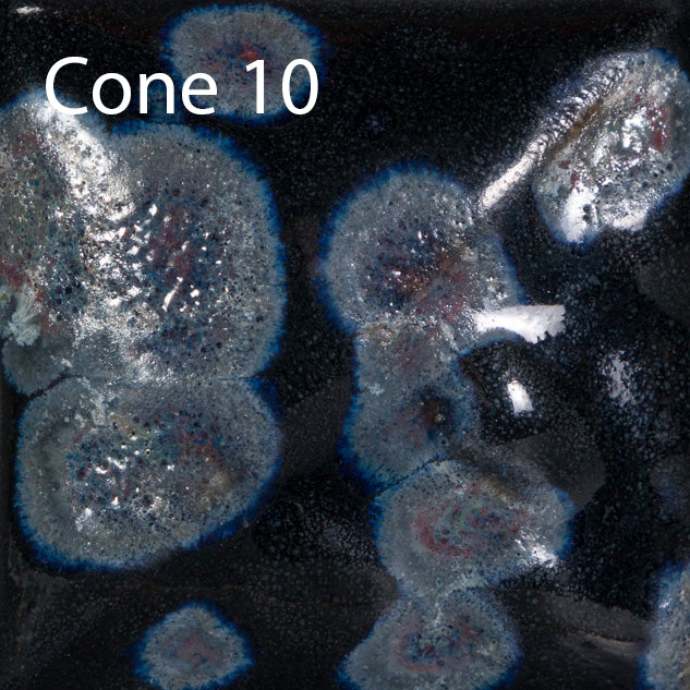 Cone 6: Night Moth is an opaque gloss glaze with crystals that bloom into sage and gray.