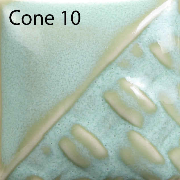 Cone 6: Green Opal achieves a vibrant chartreuse gloss when fired. Lighter applications lead to a semi-opaque yellow-green; heavier applications see the formation of a green float.